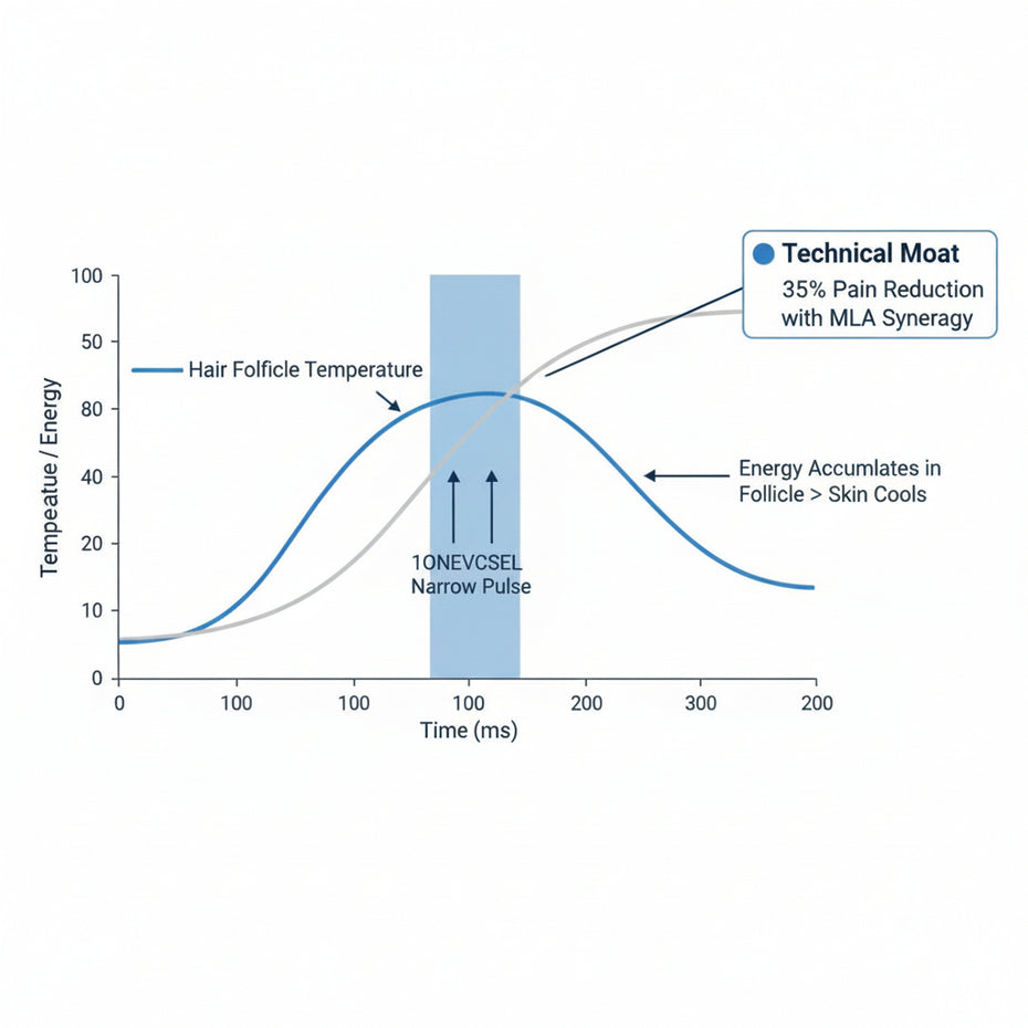 - Pulse Logic: We recommend a narrow pulse duration of 10ms – 30ms. Within this range, energy accumulation in the hair follicle occurs faster than the rate of heat dissipation, maximizing the photothermal effect.